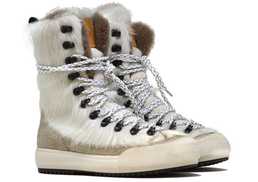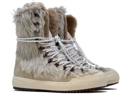 I modelli "La Yeti" e "La Mammut" sono vere icone di stile per l'inverno. Con la loro tomaia in pelo lungo e le fodere in montone sherling di primissima scelta, regalano una sensazione di lusso e calore ineguagliabili. La suola con ramponi a scomparsa ti permette di camminare con sicurezza anche sulla neve, mentre il loro design inconfondibile ti farà distinguere in ogni occasione, perfette per chi desidera affrontare i mesi più freddi con un tocco di glamour e romanticismo.